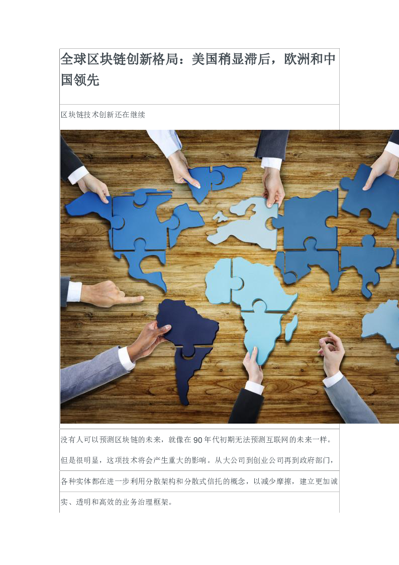 全球区块链创新格局:美国稍显滞后,欧洲和中国领先