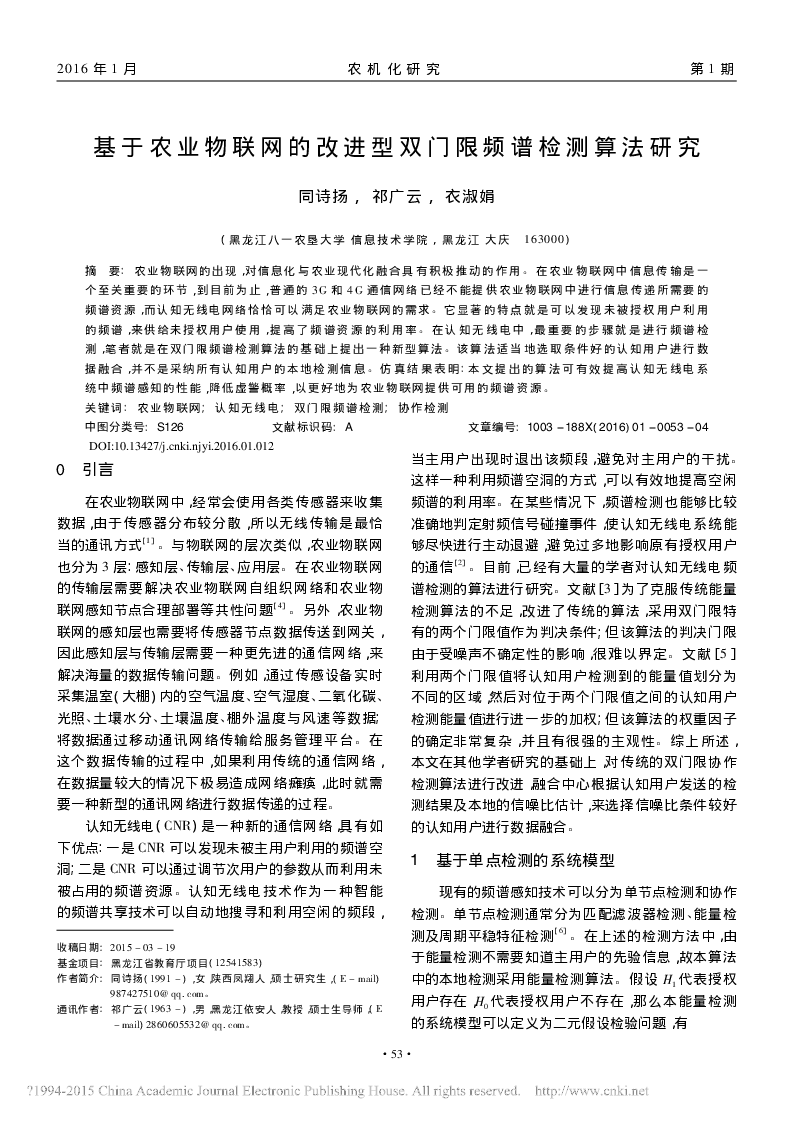 基于农业物联网的改进型双门限频谱检测算法研究.pdf