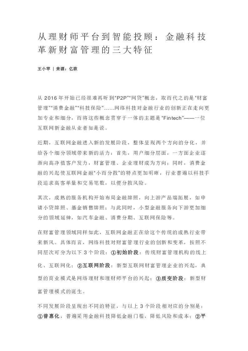 从理财师平台到智能投顾:金融科技革新财富管理的三大特征.docx